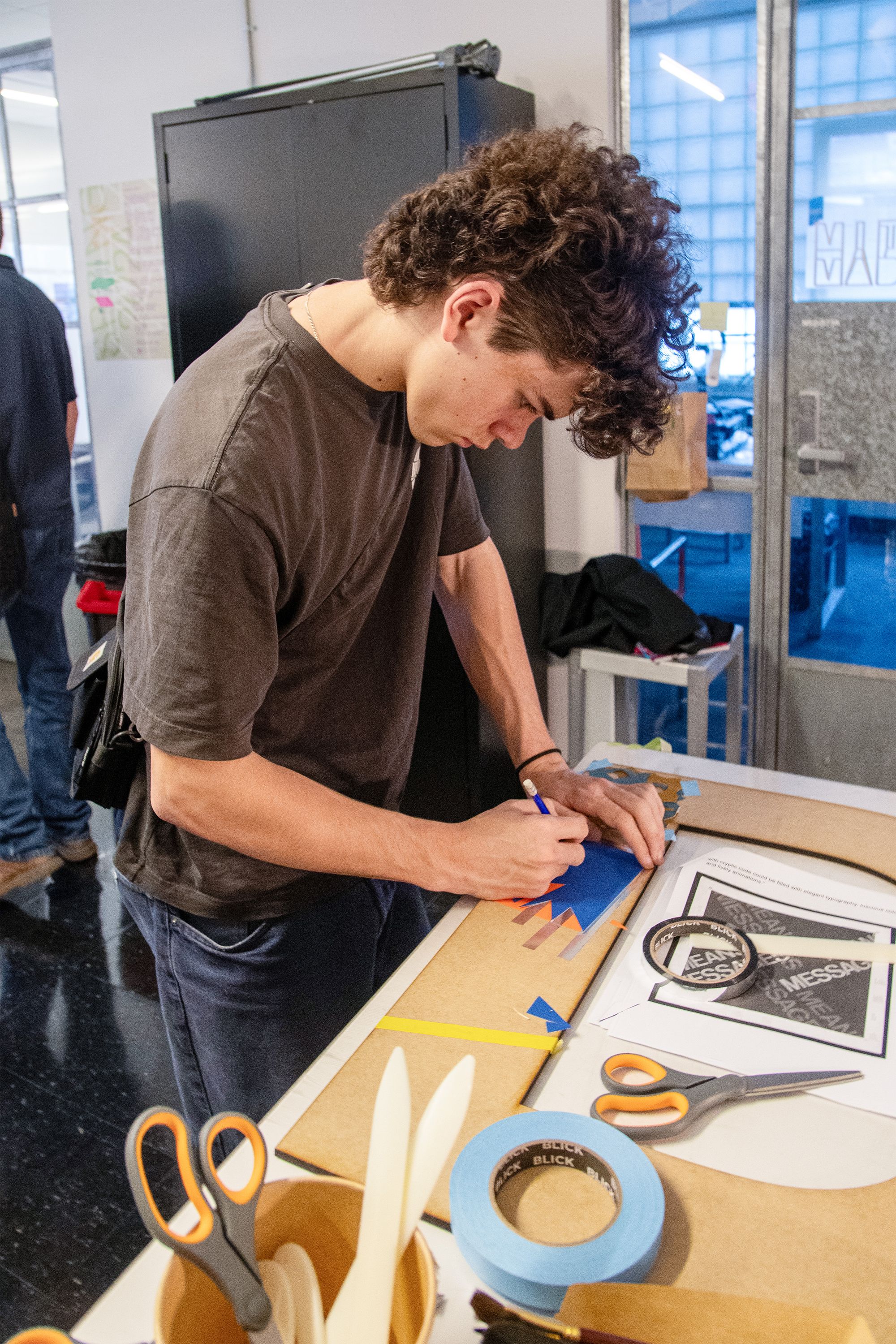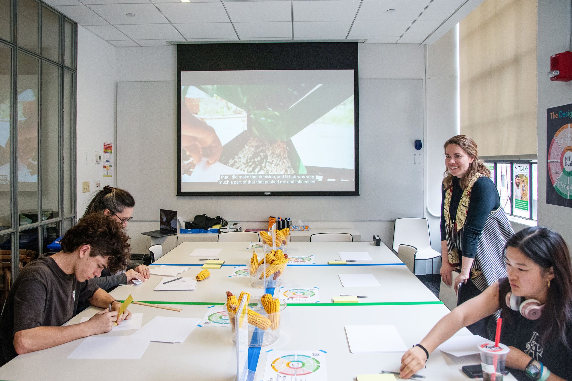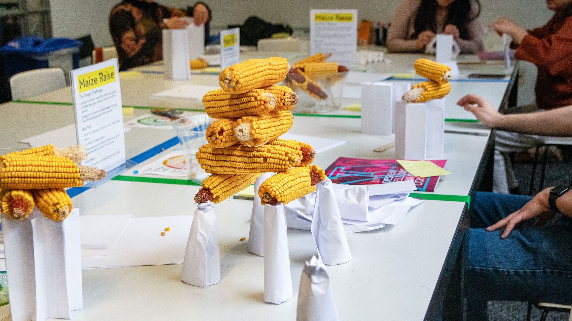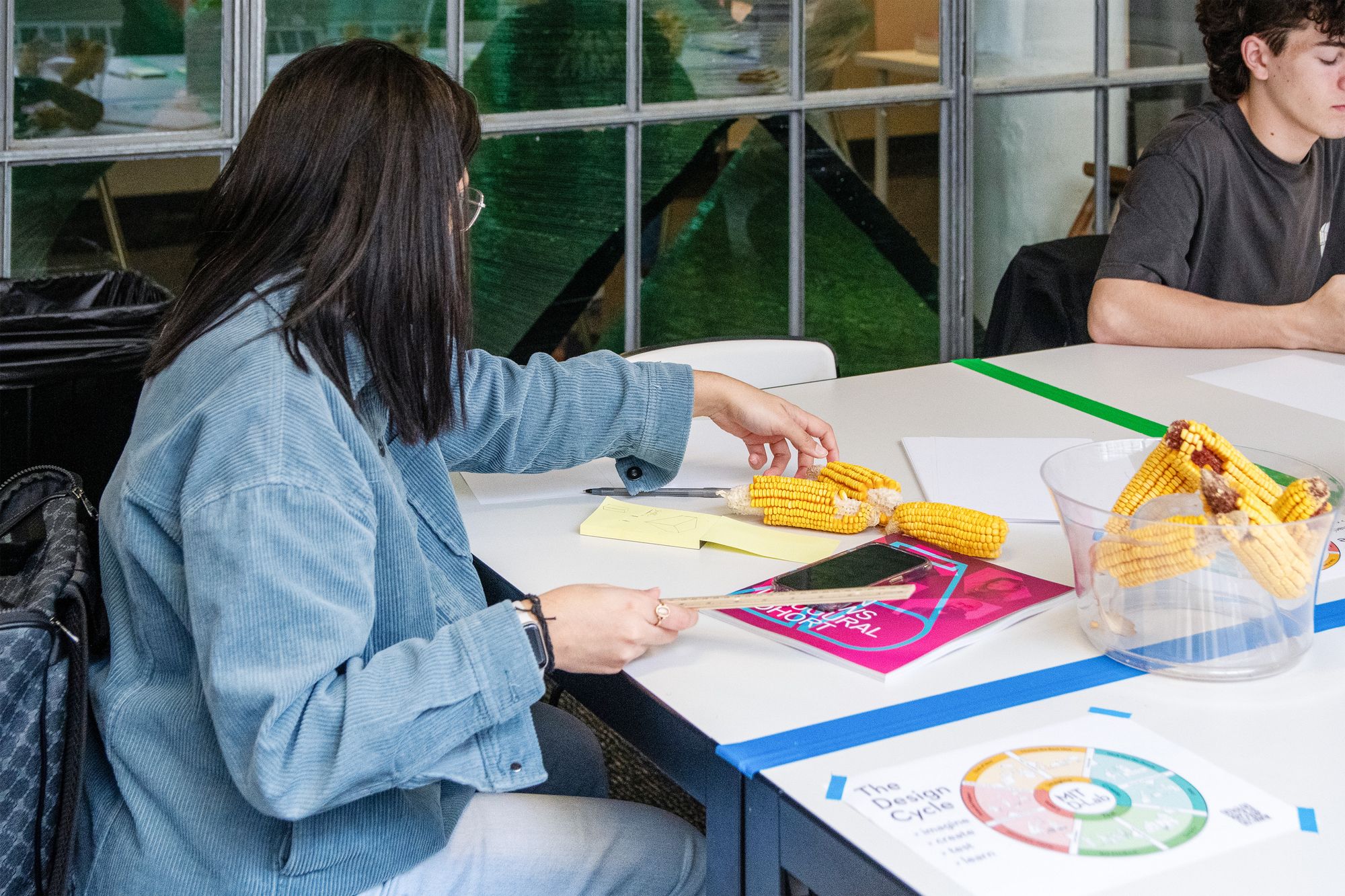 The Open Design Studio offered a chance to meet N52's design community — MIT D-Lab, the Self-Assembly Lab, the Urban Risk Lab, MAD's Design Fellows, MITdesignX — while engaging in hands-on activities. As visitors explored the third floor of the N52 building, they mingled with designers showcasing various projects and design approaches, strolled down picture galleries, raised maize, customized bandanas, and designed the word “design.” Snapshots below.